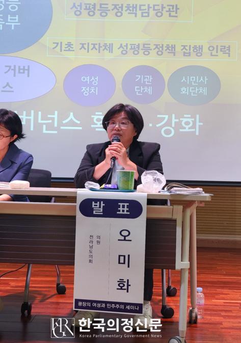 오미화 전남도의원 “여성의 정치 세력화로 성평등 지역사회 실현해야” - ‘광장의 여성과 민주주의’ 세미나서 지역 여성 정치참여 현실 진단
