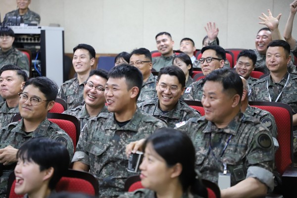 김 교수의 강의는 ‘읽기’를 넘어 ‘생각하기’를 강조하며 열정적이고 유쾌하게 진행됐다. 장병들은 활발히 반응하고 메모하며 몰입했고, 강의 내내 공감과 웃음이 오갔다. 김 교수는 "채용담당자가 지원자의 일곱 단어만 들어도 사고 수준을 파악한다. 독서를 한 사람들의 어휘는 다르다"며 어휘 사용이 곧 사고의 깊이를 드러낸다고 강조했다.