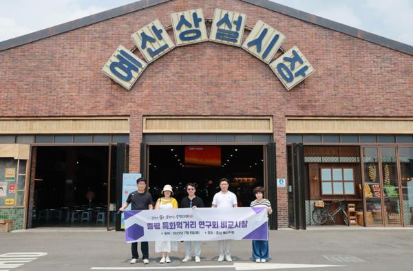 최명호 의원(사진 왼쪽) 외 증평군의회 의원 연구단체인 '증평 특화먹거리 연구회'가 지역 특화먹거리 자원 비교 및 지역경제 활성화 방안 모색을 위해 충남 예산시장으로 선진지 견학을 실시했다. 사진=증평군의회