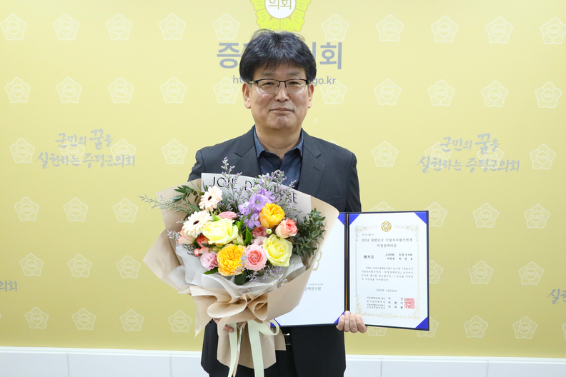 최명호 의원은 2024년 ‘대한민국 지방자치평가연계 의정정책대상’ 우수상을 수상했다. 사진=증평군의회
