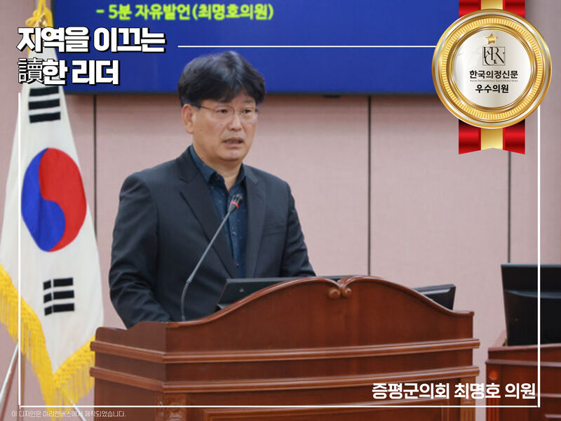 한 사람의 정책이 누군가의 삶을 지탱할 수 있다면, 그것은 정치의 본질에 한 발짝 다가선 것이다. 충북 증평군의회 최명호 의원은 그 믿음을 실천으로 증명해나가는 대표적인 생활 밀착형 정치인이다.