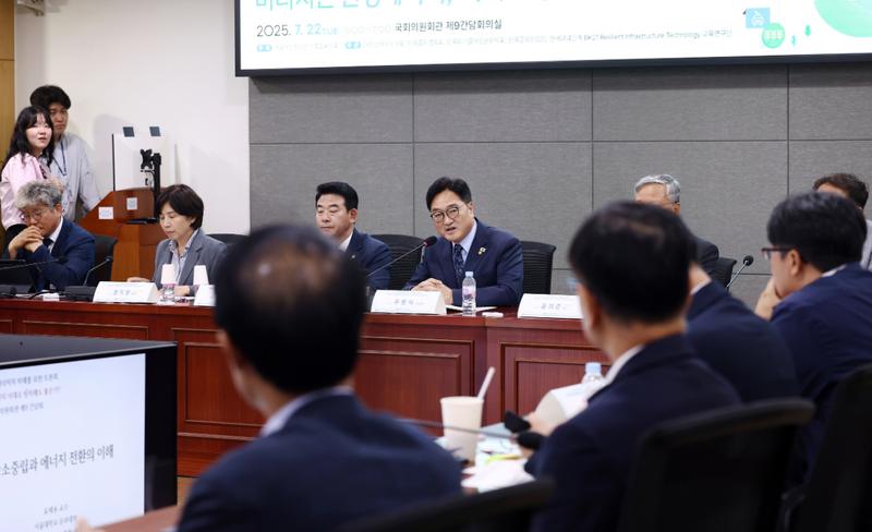 우원식 국회의장이 7월 22일 국회 의원회관에서 열린 ‘지속가능한 환경에너지의 미래를 위한 토론회’에 참석해, 기후위기 시대를 대응할 열에너지 재활용의 중요성을 강조했다.