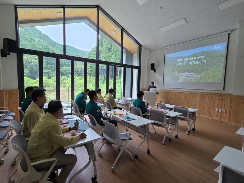 첫 번째로 방문한 용계산 치유의 숲 조성 현장에서는 사업 진행 상황과 향후 운영계획에 대한 설명을 청취한 뒤, 실질적인 프로그램 운영과 이용자 중심의 시설 개선 방안에 대해 중점 질의가 이어졌다.
