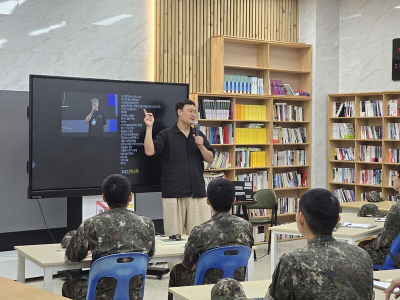 김민철 대표가 제8기 열쇠부대 독서겨영영대학 8차시 강연을 진행 중이다.(사진 제공 = 5사단)