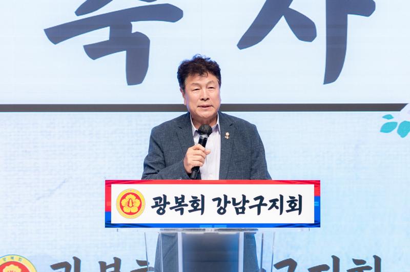 8월 1일 엘리에나호텔에서 열린 제80주년 광복 기념 광복회 강남구지회 행사에서 이호귀 의장이 축사를 하고 있다. 사진=강남구의회