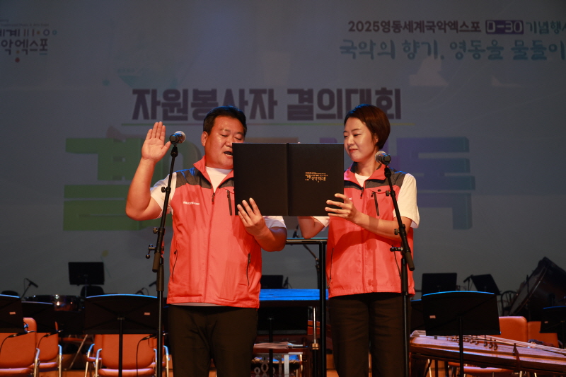 2025 영동세계국악엑스포의 성공적인 개최를 뒷받침할 핵심 동력인 자원봉사단이 힘찬 출발을 알렸다. 영동세계국악엑스포조직위원회는 지난 13일 영동복합문화예술회관 실내공연장에서 ‘2025 영동세계국악엑스포 자원봉사단 발대식’을 열고 본격적인 활동 개시를 선언했다.
