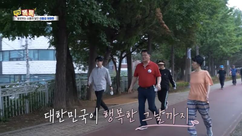 매일 아침 공원에서 시민들을 만나 현장의 소리를 듣는 신동섭 의원. 이미지= ch B tv 인천 영상 갈무리
