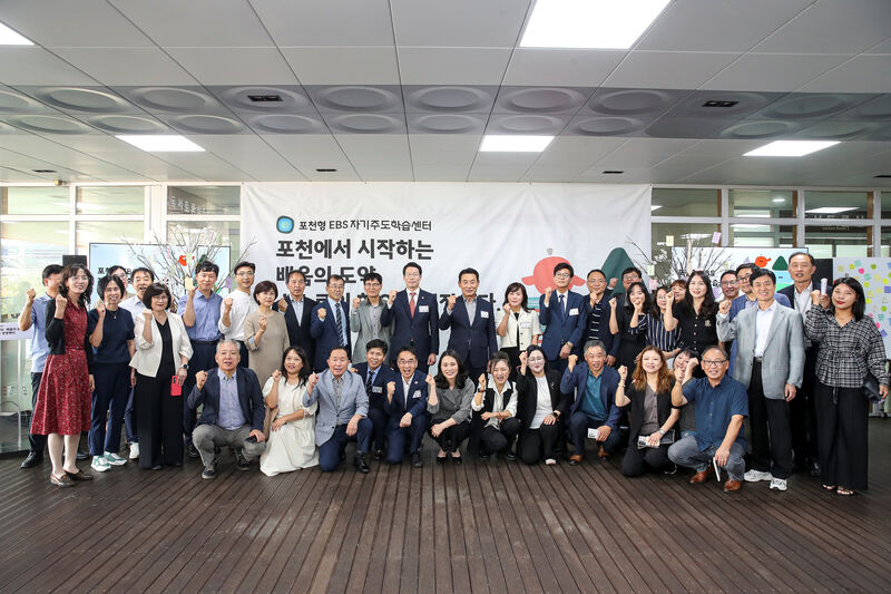 사진=지난 25일 포천형 EBS 자기주도학습센터 개소식을 갖고 관계자들이 기념촬영을 하고 있다.(제공=한국교육방송공사)