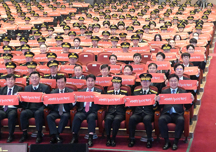 행사의 마지막 순서는 ‘국민 안전 다짐’으로 이어졌다. 참석자 전원이 ‘국민이 안전해야 나라가 행복하다’는 표어 피켓을 들고 단체사진을 촬영하며, 국민 안전을 향한 소방의 사명감을 다시 한 번 되새겼다.