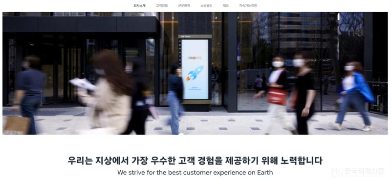쿠팡 회사소개 홈페이지에 나타난 회사 비전. 사진=쿠팡 홈페이지 갈무리