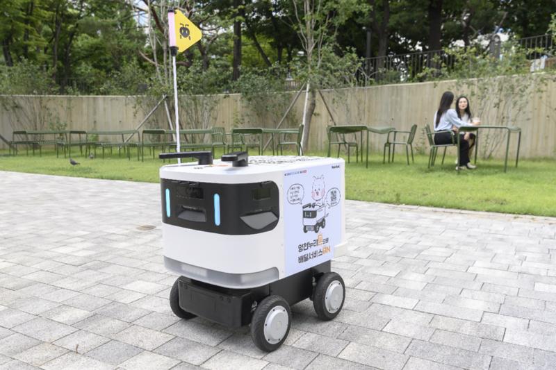 양천구 내 공원에서 배달중인 실외 자율주행로봇 '개미'(로보티즈). 사진=서울시