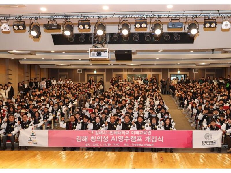 인공지능(AI) 시대가 도래함에 따라 교육의 패러다임이 급변하는 가운데, 김해시가 지역 꿈나무들을 위한 혁신적인 교육 실험에 나섰다. 김해시미래인재장학재단(이사장 노은식)은 지난 18일 오후 2시 인제대학교 장영실관 대강당에서 '김해 창의성 AI 영수캠프' 개강식을 갖고, 오는 31일까지 이어지는 13박 14일간의 대장정에 돌입했다고 19일 밝혔다.