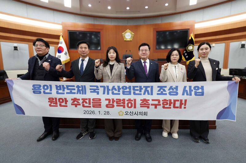 오산시의회가 용인 반도체 클러스터 조성 사업의 원안 추진을 강력히 촉구하고 나섰다. 오산시의회(의장 이상복)는 1월 28일 시의회 본회의장에서 성명서를 발표하고, 최근 정치권 일각에서 제기되고 있는 용인 반도체 클러스터 이전론에 대해 분명한 반대 입장을 밝혔다.