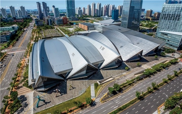 유정복 인천시장이 3단계 건립 추진 계획을 밝힌 송도컨벤시아 전경 모습. [사진=인천경제자유구역청]