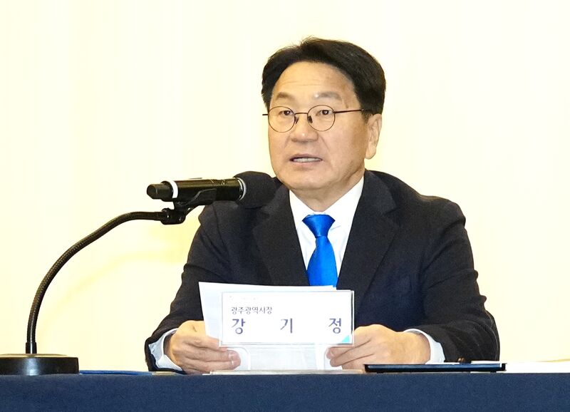 강기정 광주광역시장이 2일 전남 나주시에서 열린 광주·전남 행정통합 추진협의체 회의에 참석해 발언하고 있다. 사진=광주광역시 제공