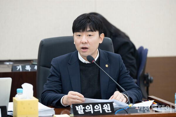인천광역시의회 신성영 의원이 건설교통위원회 회의에서 ‘청라하늘대교 통행료 감면 확대’를 골자로 한 조례 개정안에 대해 발언하고 있다. 사진=인천시의회
