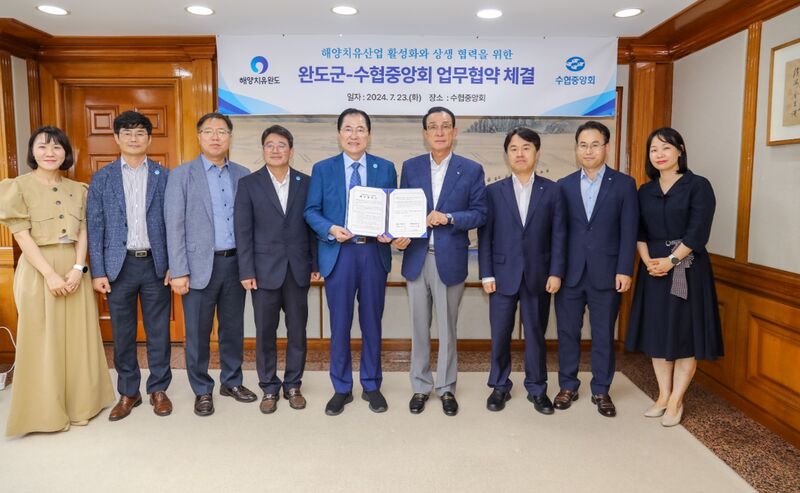 업무 협약은 수협중앙회 접견실에서 진행됐으며, 신우철 완도군수와 노동진 수협 중앙회장을 비롯한 관계자 등이 참석했다.