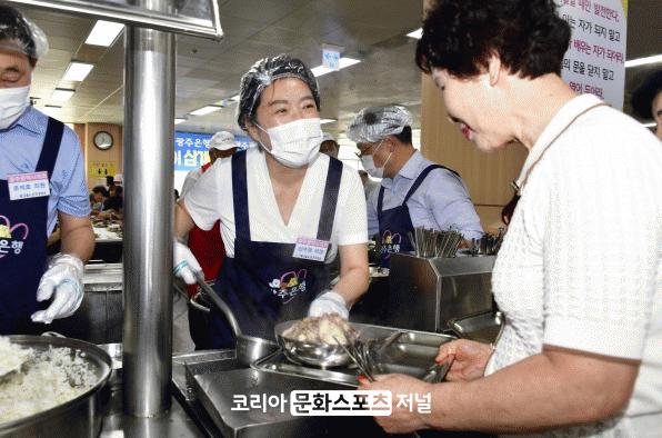 이어 신수정 의장은 "오늘 배식 봉사활동을 하며 큰 보람을 느꼈다"면서 "연일 지속되는 폭염에 지역 어르신들이 건강한 여름을 보내시길 바라며, 어르신들께서 건강한 노후생활을 영위할 수 있도록 광주시의회가 노인 복지 향상에 최선을 다하겠다"라고 말했다.