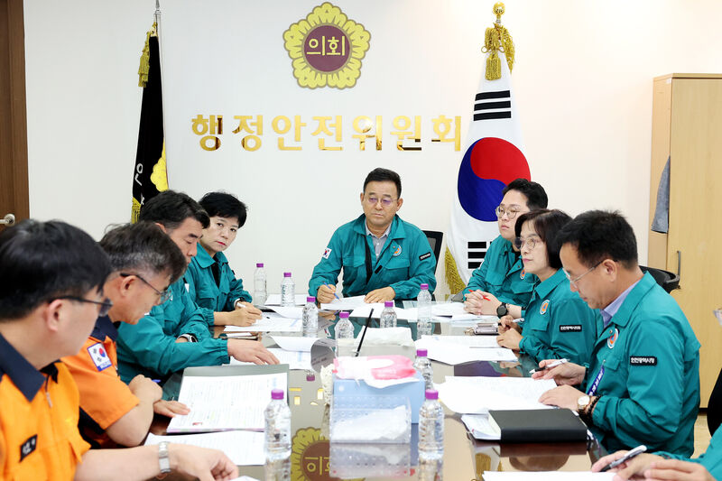 20일 인천시의회 행정안전위원회에 따르면 지난 19일 시의회에서 김재동(국민의힘, 미추 1) 위원장을 비롯해 유승분(국민의힘, 연수 3)·김대영(더불어민주당, 비례) 부위원장, 김명주(더불어민주당, 서구 1)·신영희(국민의힘, 옹진) 의원, 인천소방본부장·시민안전본부장 등이 참석한 가운데 인천시 재난안전대책본부 운영 사항과 긴급 안전 대책 등 향후 대응 방안을 논의하고 관계 직원을 격려했다.