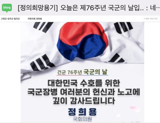 10월 1일(화) 경상북도 고령군 정희용 국회의원은 개인 소셜네트워크 개인 블로그에 제76주년 국군의 날을 맞이하며 국군 장병들을 위해 감사와 격려 메시지를 게재했다.