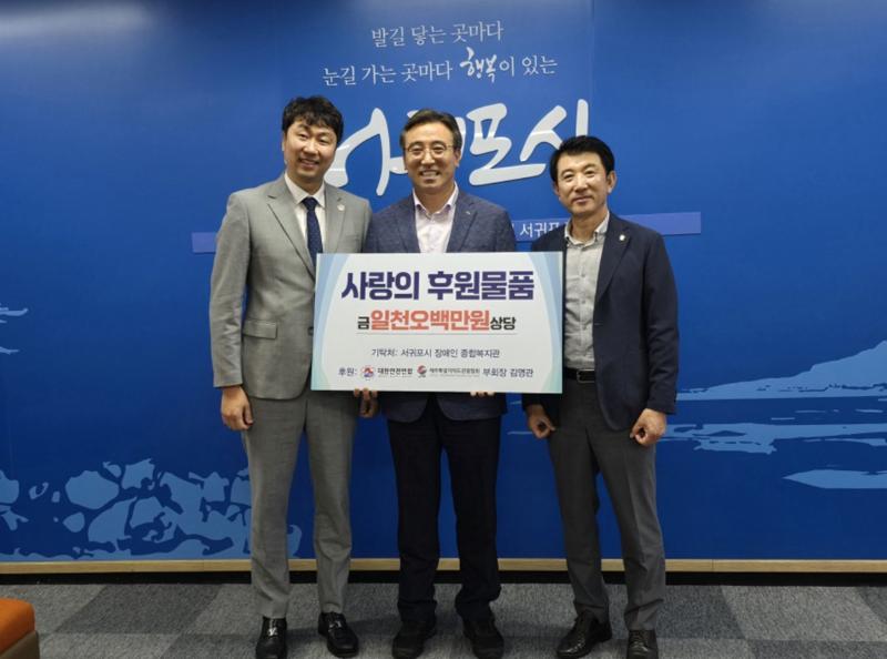 지난 9월 25일 서귀포시(시장 오순문)는 제주특별자치도관광협회(부회장 김영관), 대한안전연합(회장 정현민), 갈치왕 중문 본점과 서귀포 시청에서 관내 사회복지시설을 위하여 사랑의 이웃돕기 생필품 전달 기탁식을 가졌다.