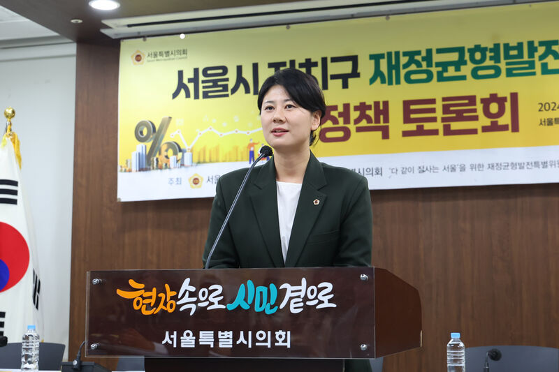「서울특별시의회 다 같이 잘 사는 서울을 위한 재정균형발전 특별위원회」의 박수빈 위원장(더불어민주당, 강북4)은 10월 29일(화), 서울시의회 제2대회의실에서 서울시 내 자치구 간 재정균형발전을 주제로 정책토론회를 개최했다.