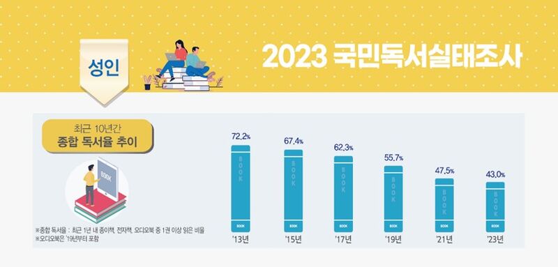 2023 국민독서실태조사 최근 10년간 종합 독서율 추이. 자료=문화체육관광부