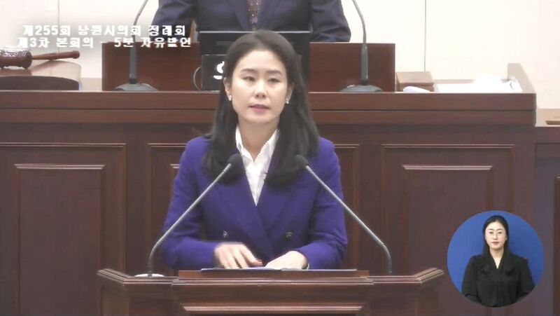 제9대 제255회 제3차 본회의 5분 자유발언 중인 이미선 의원. 사진=남원시의회 발언 캡쳐
