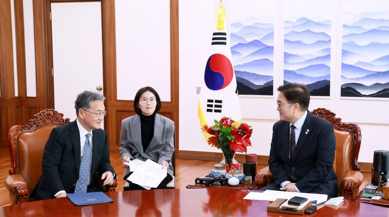 우원식 국회의장은 18일 오전 국회 의장집무실에서 조셉 윤 주한미국대사대리를 접견하고, 최근 방중 성과 및 한미 협력 방안에 대해 의견을 교환했다.