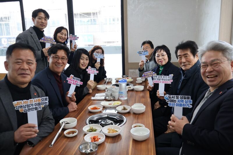 지역경제 활성화를 위한 소비 실천 운동으로 지역 상권 살리기에 동참하고 있는 문화관광체육위원회. 사진=제주특별자치도의회