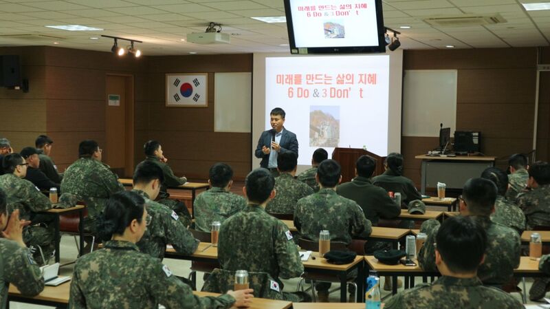 육군 제5보병사단 신병교육대대(사단장 윤기중, 이하, 5사단)에서 3월 14일(금) 오후 2시, 5사단 장병들을 대상으로 "제7기 열쇠부대 독서경영대학" 4차시 특강이 성공적으로 개최됐다. 이번 강의는 이랜드그룹 이인석 경영고문이 연사로 초청되어 "미래를 만드는 삶의 지혜: 6 Do & 3 Don't"라는 주제로 진행되었다.