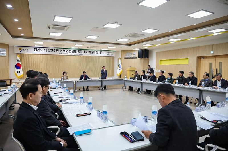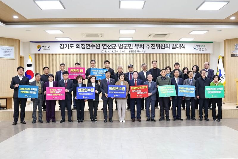 19일 오전 연천군청 대회의실에서 ‘경기도 의정연수원 유치를 위한 범군민 추진위원회’ 발대식이 개최됐다. 이날 행사에는 지역 주요 인사와 군민 대표들이 참석해 의정연수원 유치의 당위성을 강조하고 결속을 다졌다.