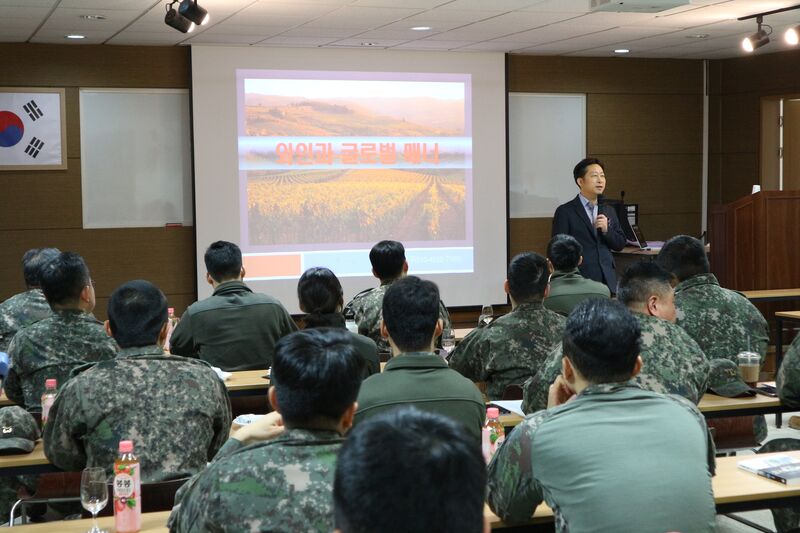 강연을 진행한 전 회장은 “군 장병들도 언젠가는 국제무대에서 다양한 사람들과 소통할 기회를 갖게 된다”며 “기본적인 와인 매너와 글로벌 테이블 에티켓은 곧 소통의 도구가 될 수 있다”고 강조했다.