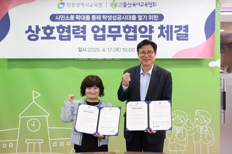 이번 협약을 통해 인천시교육청은 출산육아교육협회의 인천교육 관련 의견을 정책 수립 및 제도 개선에 반영하고, ‘읽걷쓰’ 프로그램 운영 사례와 학생들의 긍정적 변화 사례를 공유하는 등 혁신 교육의 성과를 널리 확산할 계획이다.