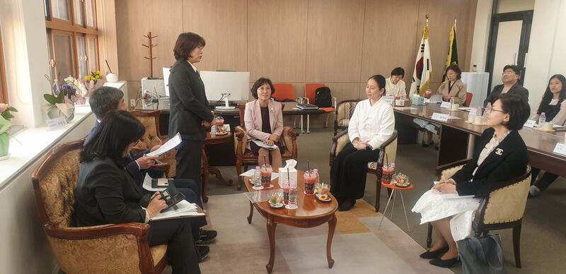 서울특별시의회 심미경 의원(국민의힘, 동대문 제2선거구)이 동대문구 휘경여자중학교를 방문해 동부교육지원청 및 학교 관계자들과 함께 국제 바칼로레아(IB) 프로그램 관심학교 운영 현황을 점검하고, 현장의 운영 성과와 향후 과제에 대해 의견을 나누고 있다. 사진=서울시의회