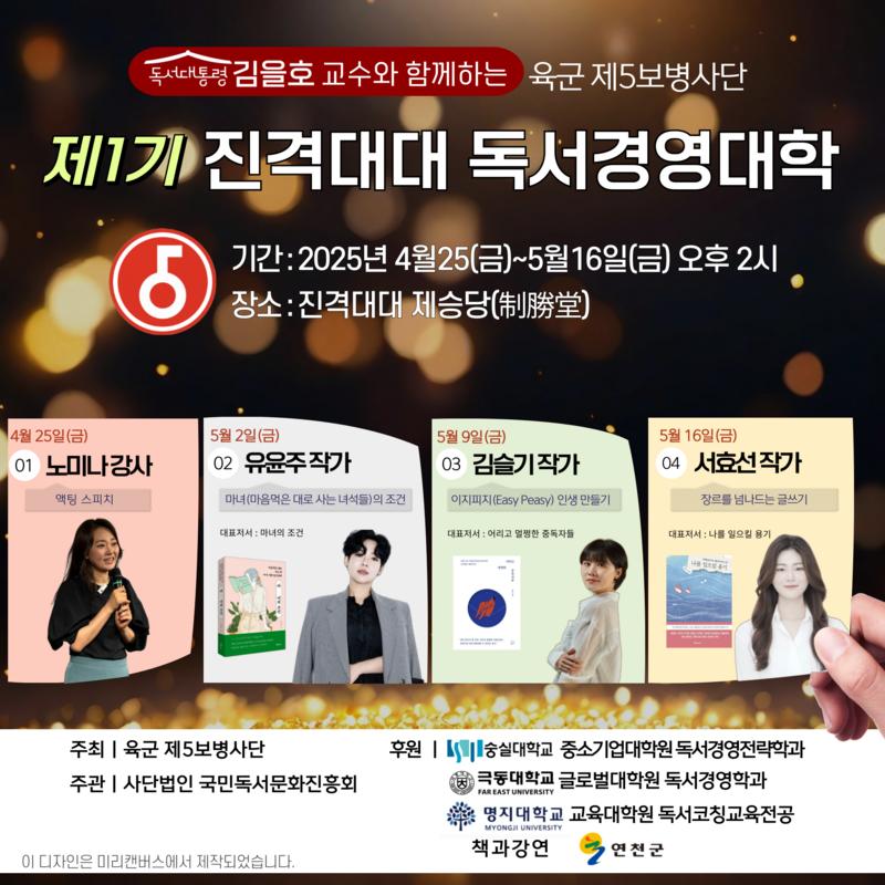 이번 행사는 사단법인 국민독서문화진흥회(회장 김을호)가 주관하고, 육군 제5보병사단이 주최했으며, 연천군, 책과강연, 숭실대학교 중소기업대학원 독서경영전략학과, 극동대학교 글로벌대학원 독서경영학과, 명지대학교 교육대학원 교육학과 독서코칭교육전공이 후원했다.