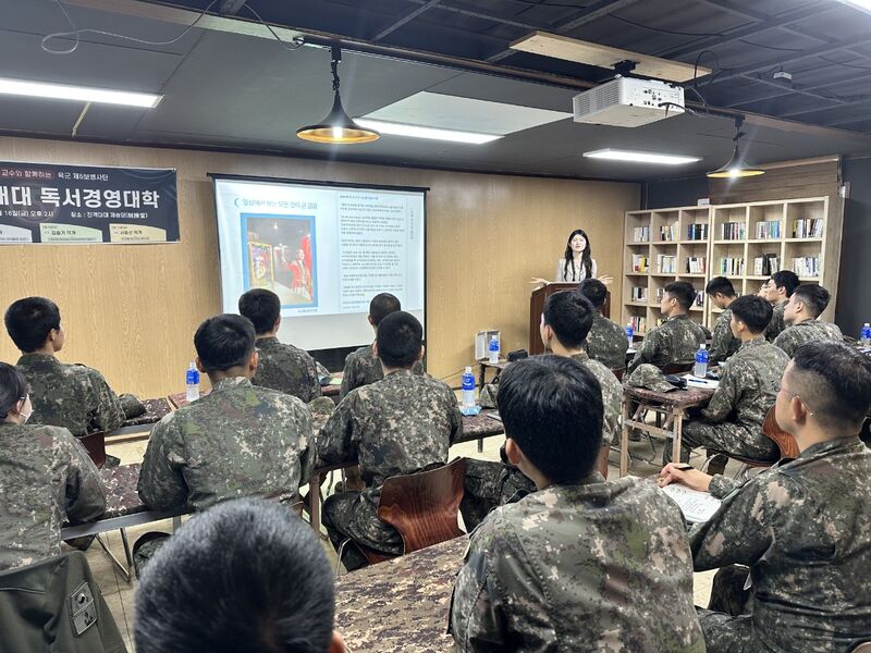 사회 초년생으로 세상에 나설 병사들이, 훗날 또 다른 사회초년생을 따뜻하게 품어주는 어른이 되길 바란다는 마음이었다. 이번 제1기 독서경영대학은 4월 25일 노미나 강사, 5월 2일 유윤주 작가에 이어 5월 16일 서효선 작가까지 강연을 끝마쳤다.