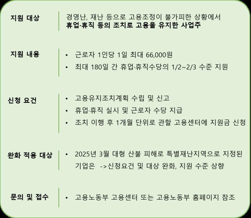 이정한 고용정책실장은 “급변하는 경제 환경과 대형 재난 속에서도 노사 모두가 고용 유지를 위해 힘쓰고 있는 만큼, 정부도 고용유지지원금이 실질적인 도움이 되도록 적극적으로 지원해 나가겠다”고 강조했다.