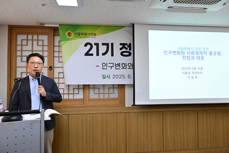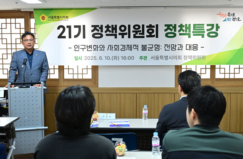 서울특별시의회 21기 정책위원회(위원장 이상훈)가 서울의 인구감소와 사회경제적 불균형 문제에 대한 해법을 모색하기 위해 전문가 초청 정책특강을 열었다.